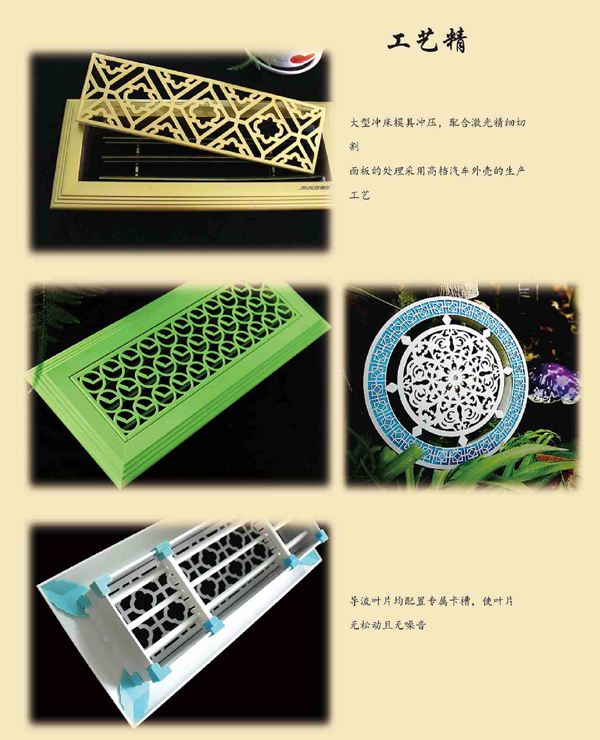 藝術(shù)風口藝術(shù)百葉風口藝術(shù)裝飾的詳細頁面。訂貨號:藝術(shù)風口,貨號:土豪金,種類:百葉式風口,用途:出風口,材質(zhì):環(huán)保鍍鋅板,形式:單層,品牌:順智,型號:仿古銅色,是否跨境貨源:否,規(guī)格:可定制。我公司專業(yè)設(shè)計制造各類藝術(shù)風口,高端酒店及別墅豪華藝術(shù)風口,顏色款式客根據(jù)客戶要求定制,可大規(guī)模批量生產(chǎn)可承擔現(xiàn)場安裝。